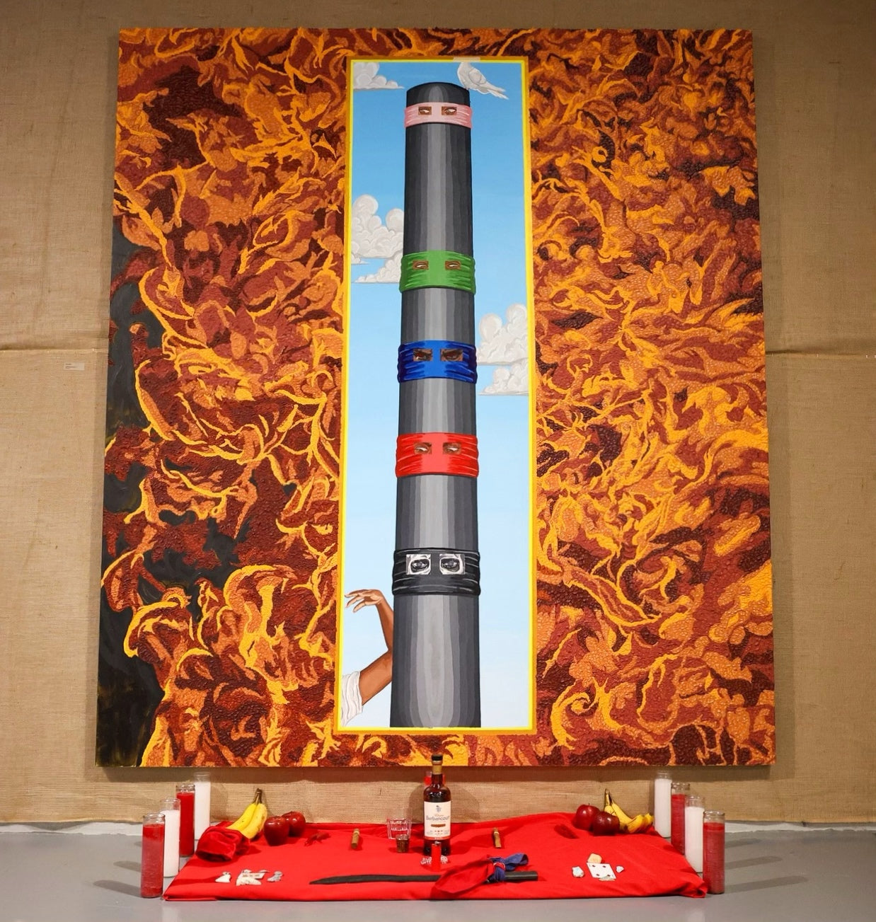 Acrylic, Acrylic Gel and Nails on Wood Panel and Canvas